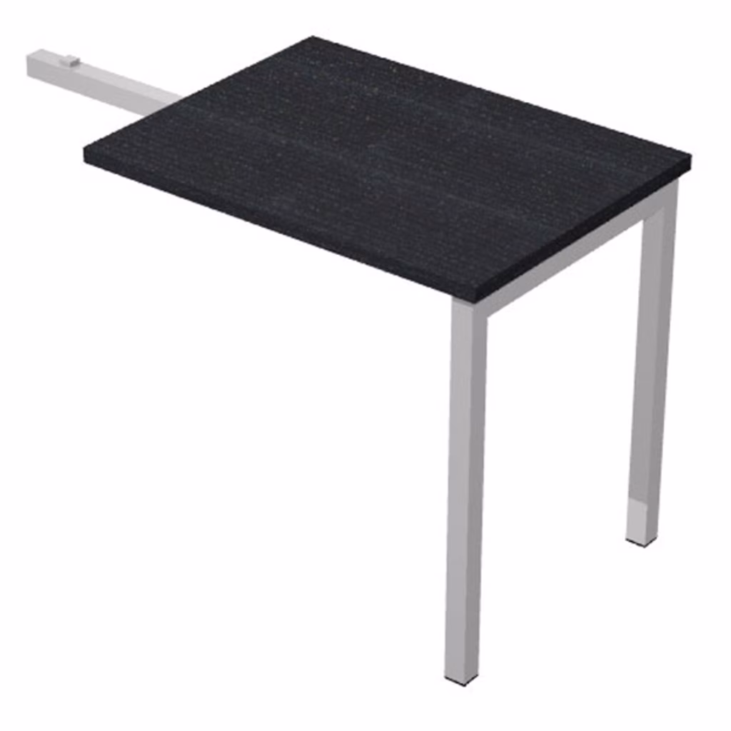 Allungo per scrivania EasySpace 4040 spessore 2,2 cm in melaminico antigraffio e antiriflesso. Bordi dei piani scrivania e ritorno in abs in spessore. Struttura in metallo a sezione quadra 40x40 mm, finitura grigio alluminio. Piedini regolabili.