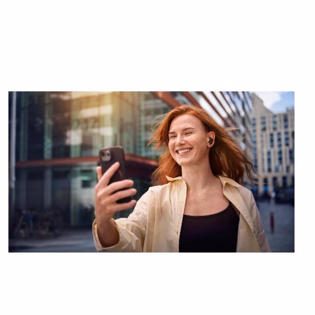 Quando devi fare una chiamata, la configurazione a 4 microfoni e l'algoritmo di riduzione del rumore catturano l'audio della voce e attenuano il brusio di fondo dell'ambiente circostante. Anche se ti trovi in un bar affollato, la tua voce risulterà chiara e il tuo interlocutore non dovrà ascoltare anche tutte le altre conversazioni in corso intorno a te!