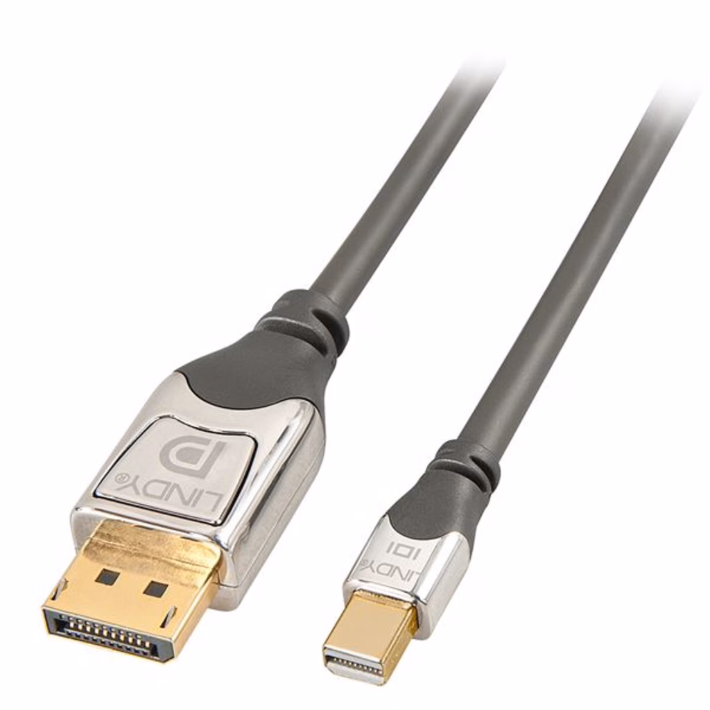 Cavo Mini DisplayPort a DisplayPort di alta qualità e design ricercato Supporta risoluzioni UHD fino a 4K 4096x2160@60Hz 4:4:4 10bit Connettori e contatti placcati oro 24K, guscio in ABS cromato Cavo con tripla schermatura, resistente alla corrosione, conduttori in rame stagnato 32AWG DisplayPort 1.2, 4K, 3D, 21.6Gbps; 10 anni di garanzia I cavi Mini DisplayPort a DisplayPort CROMO sono realizzati con conduttori 32AWG con tripla schermatura per performance ottimali e resistenza alla corrosione. Contatti e connettori sono placcati oro 24K per mantenere la massima integrità del segnale e affidabilità. Supportano risoluzioni UHD fino a 4K 4096x2160@60Hz 4:4:4 10bit, incluso segnali 3D stereoscopici. La profondità di colori 4:4:4 garantisce la riproduzione dei colori più accurata possibile. I cavi CROMO hanno i connettori in ABS con il caratteristico design cromato per dare un tocco di stile in applicazioni commerciali e domestiche. Disponibili in diverse metrature: 0.5m, 1m, 2m, 3m e 5m