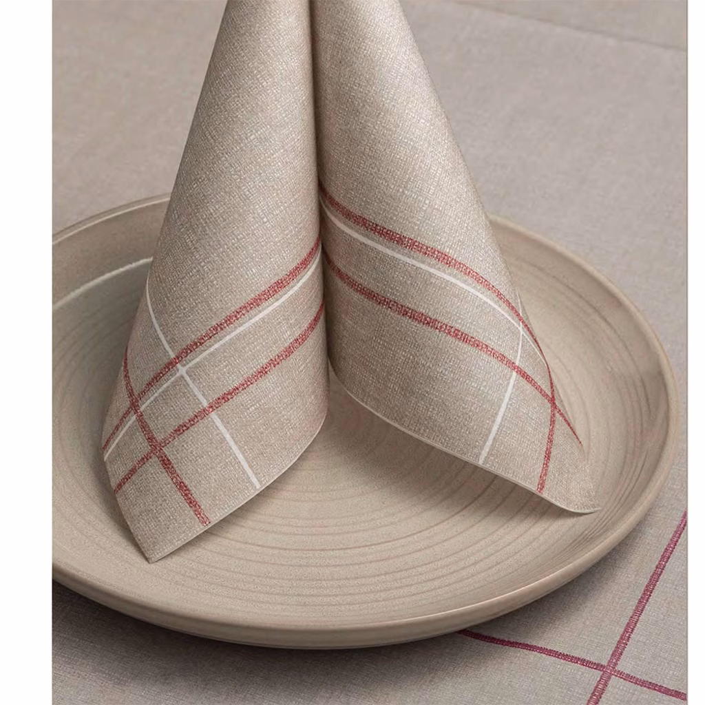 Eleganti tovaglie in carta a secco di alta qualità e grammatura, materiale di derivazione naturale in cui le fibre di cellulosa sono fissate da un bagno di lattice per ottenere una maggiore resistenza alla trazione rispetto alla cellulosa tradizionale. Nascono all'origine in bianco e vengono poi stampati con un'ottima tenuta del colore, dovuta al forte coefficiente di assorbenza. Estremamente resistenti, morbidi e assorbenti, sono disponibili in diverse tonalità di colore per adattarsi a ogni tavola e a ogni occasione.