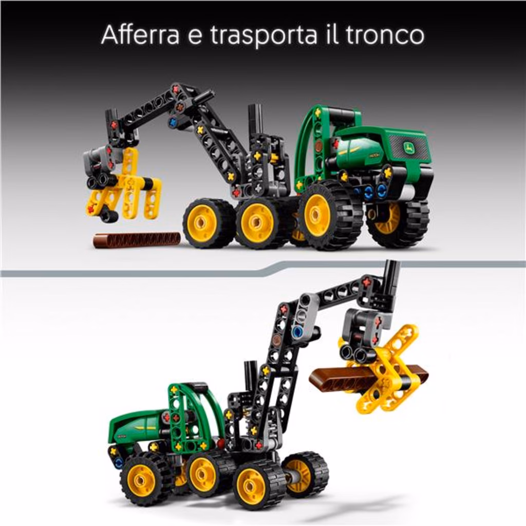 Ispira avventure nella foresta per i bambini e le bambine dai 7 anni in su con questo Mietitrebbia gommato John Deere 1470H LEGO® Technic (42218). Il veicolo da cantiere è dotato di tante funzioni per deliziare i giovani fan di John Deere. Ammira il braccio che ruota di 180 gradi. Poi è il momento di entrare in azione mentre i bambini aprono e chiudono l artiglio per afferrare, sollevare e abbassare il tronco. Questo giocattolo STEM è anche dotato di sospensioni a bilanciere e sterzo articolatoper i bambini. Con la sua accattivante livrea verde, nera e gialla di John Deere, questo mietitrebbia è un set divertente con cui i bambini possono giocare ogni volta. I set LEGO Technic presentano movimenti e meccanismi realistici che introduconoi giovani costruttori LEGO all universo dell ingegneria in modo accessibile e vicino alla realtà. I bambini possono costruire con confidenza utilizzando l app LEGO Builder, che consente di ingrandire, ruotare in 3D e monitorare i progressi con istruzio ni digitali facili da seguire.