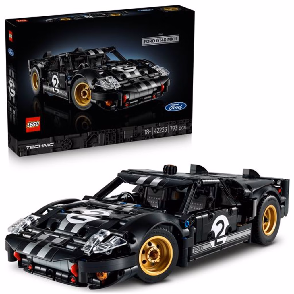 Conquista la vittoria e celebra un icona del mondo dei motori con questo modello di Auto da corsa Ford GT40 MKII 1966 LEGO® Technic per adulti (42223). Gli amanti delle auto, i fan delle corse e gli appassionati di costruzioni dai 18 anni in su possono rivivere lo spirito della gara endurance più prestigiosa del mondo con questa versione realistica di un iconica auto vintage. Divertiti a esplorare le caratteristiche dettagliate del set. Usa la manopola sul tetto dell auto per sterzare. Dai un occhiata alle portiere apribili e ammira la livrea nera e argento ispirata all auto vincente della vita reale. Apri la cover del motore per rivelare il motore V8, quindi usa la leva all interno per aprire il cofano. Dopo averlo costruita, potrai esporre la tua auto da corsa in qualsiasi stanza o ufficio. Soddisfa la tua passione per i kit da costruzione di veicoli ad alte prestazioni con la gamma di auto da collezione LEGO Technic per adulti. Divertiti a costruire con l app LEGO Builder, ingrandisci e ruota il modello con le istruzioni 3D e salva e tieni traccia dei progressi, il tutto dall app.