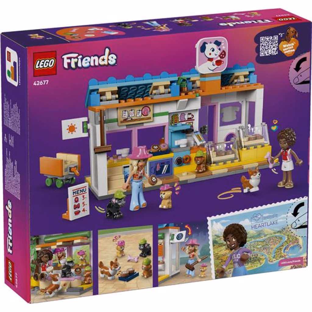 Ispira i bambini a creare le loro dolci storie con il giocattolo Il forno dei biscottini per cani LEGO® Friends (42677) per i bambini e le bambine dai 6 anni in su. Il forno è ricco di dettagli umoristici e accessori giocattolo per deliziare gli amanti degli animali domestici. Scopri il forno, la macchina per il caffè, il frigorifero e i posti a sedere, oltre a tanti dettagli a misura di animale come la divertente insegna, il carrello degli animali e la porta di ingresso per gli animali. C è anche una rampa che porta al bancone in modo che i cuccioli possano servire i clienti! Questo set per il gioco di ruolo include 2 mini-doll, 4 cani giocattolo e tanti accessori per gli animali domestici che i bambini possono cucinare per ore e ore didivertimento. I dettagli includono un menu, ciambelle, biscotti, dolcetti per cani, un osso, latte, tazze e altro ancora. Questo set del forno LEGO è un fantastico regalo per i bambini, le bambine e gli amanti degli animali domestici. Con l app LEGO Bu ilder, i bambini possono divertirsi con un avventura di costruzione intuitiva, ingrandendo e ruotando i set grazie a istruzioni per la costruzione in 3D, salvare i set e seguire i propri progressi.