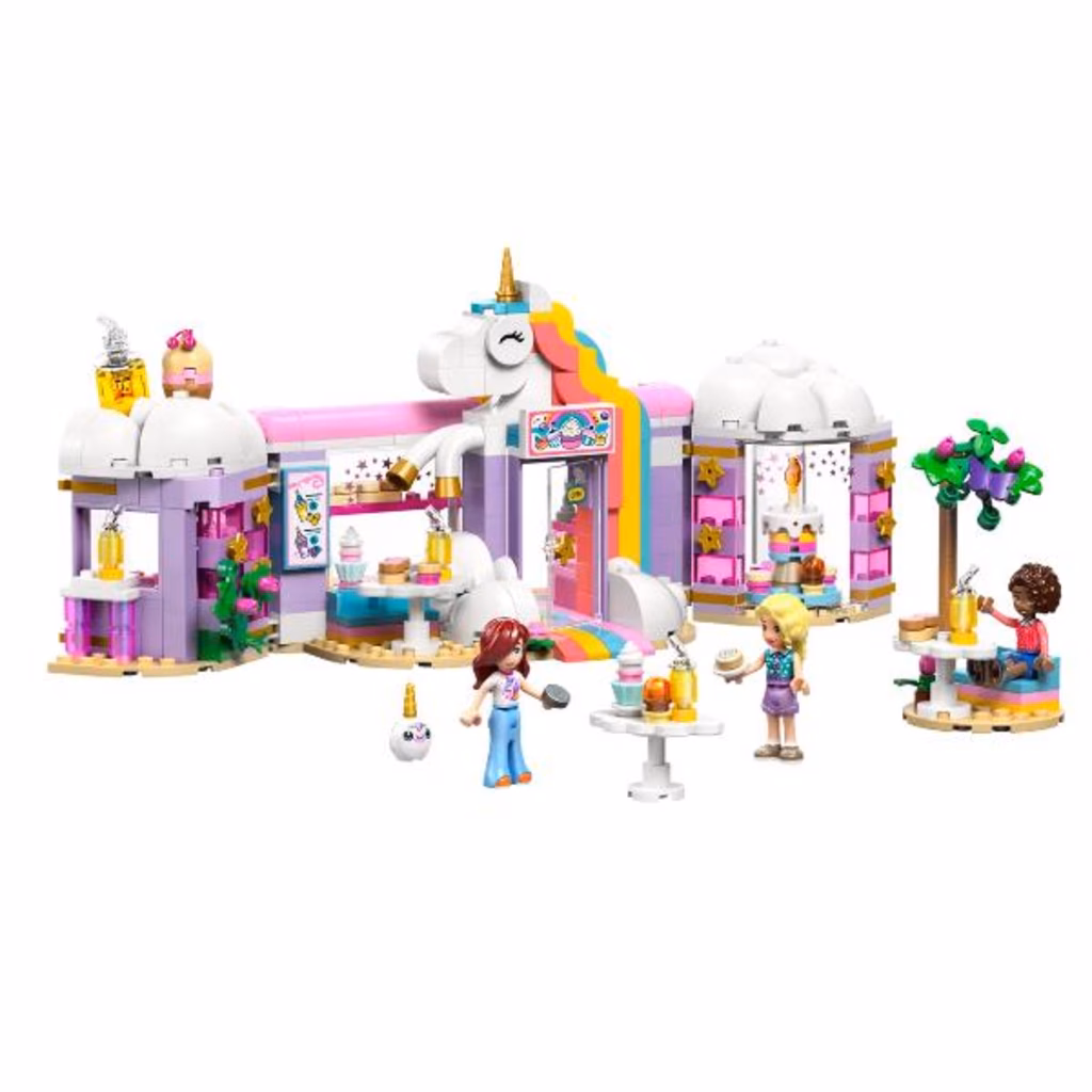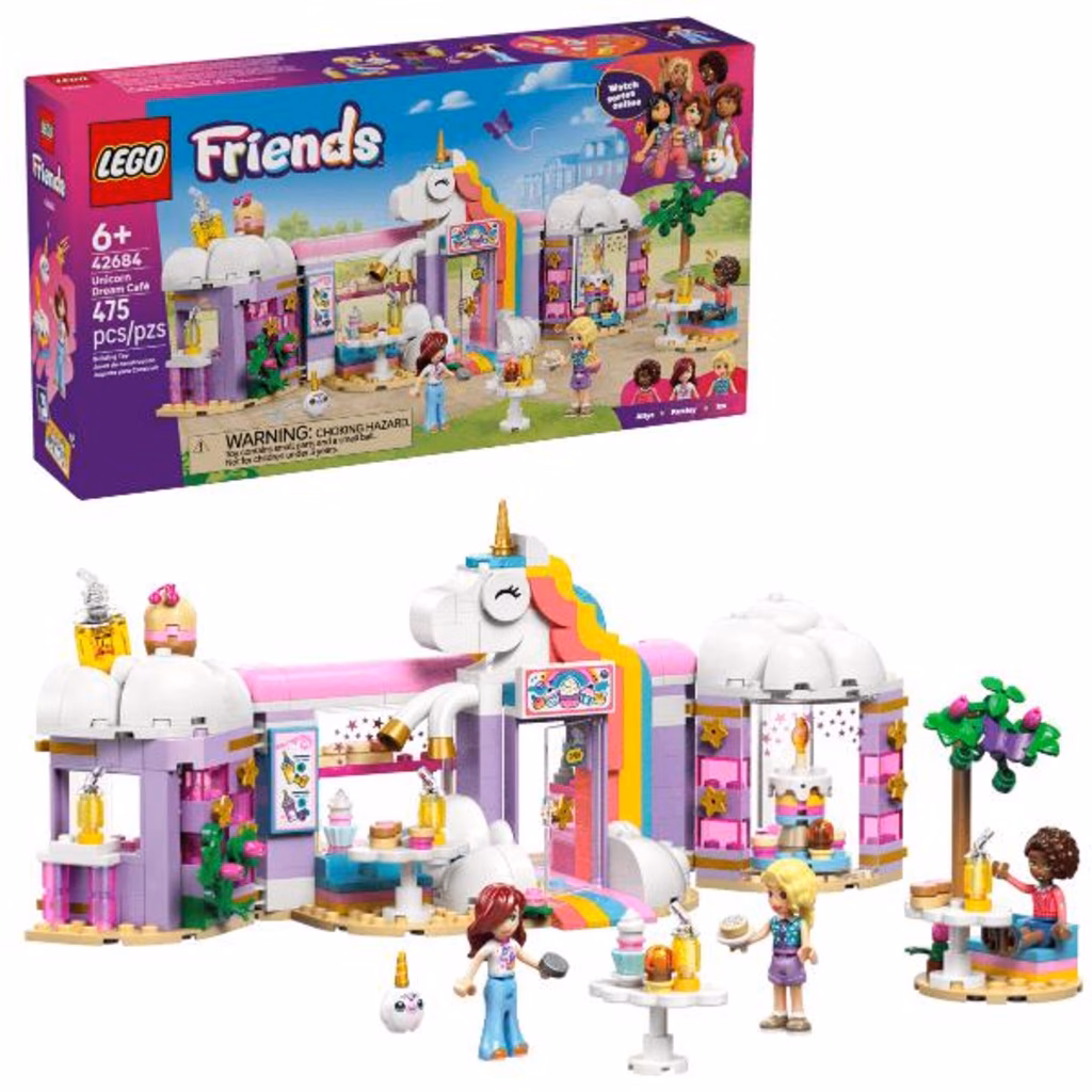 Regala ai bambini dai 6 anni in su una spruzzata di creatività con il playset giocattolo Caffè dei sogni Unicorno LEGO® Friends (42684). I bambini e le bambine possono raccontare le loro storie nella caffetteria giocattolo con unicorno arcobaleno,che include tanti simpatici accessori.Il dettagliato set incoraggia il gioco aperto con 3 mini-doll, torte giocattolo, ciambelle, cialde e biscotti. Ci sono anche graziosi dolcetti da esporre nella vetrina o sulla piattaforma girevole. Crea più possibilità di narrazione di storie con il bar dei succhi di frutta e dei frullati, i posti a sedere interni ed esterni, il registratore di cassa e un peluche di unicorno LEGO. I giovani fan di Friends possono divertirsi con il gioco creativo con la proprietaria del caffè Iza e i clienti Paisley e Aliya. Questo set è un fantastico regalo di compleanno per i bambini e le bambine che amano gli unicorni o che amano il gioco di finzione. Con l app LEGO Builder, i bambini possono divertirsi con un avventura di costruzione intuitiva, ingrandendo e ruotando i set grazie a istruzioni per la costruzione in 3D, salvare i set e seguire i propri progressi.