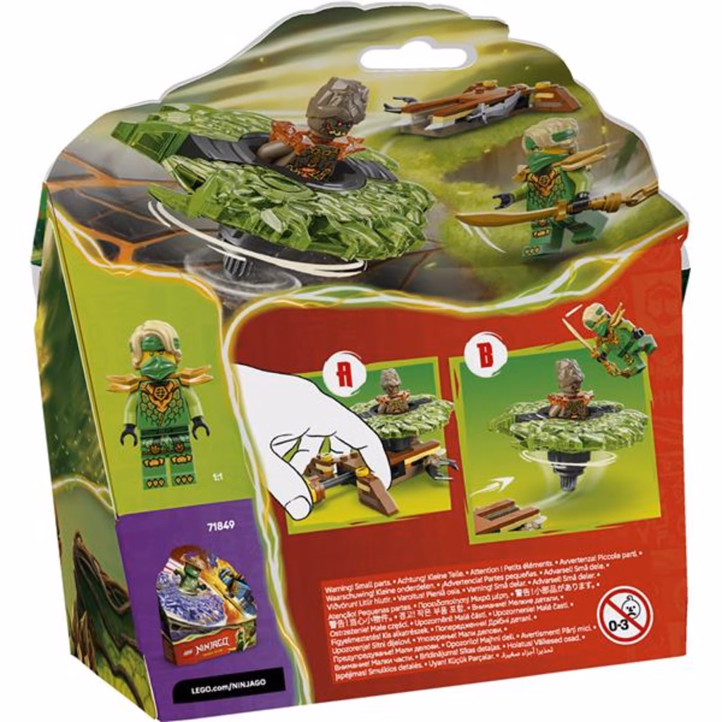I bambini e le bambine dai 6 anni in su adoreranno costruire questo giocattolo da battaglia Lloyd contro Spinner Mostro della Terra LEGO® NINJAGO® (71850) e ricreare le scene della stagione 4 del programma televisivo NINJAGO La rivolta dei draghi.Una volta costruito, i bambini premono il pulsante del lanciatore per lanciare lo spinner giocattolo in una rapida rotazione e guardano se le 2 parti del Potere degli Elementi volano via quando colpisce il bersaglio. Questo piccolo set LEGO contiene 2 minifigure: Lloyd con una spada e il malvagio Mostro della Terra, che può essere inserito all interno dello spinner giocattolo. I bambini potranno divertirsi per ore con le battaglie tra il bene e il male insieme ai personaggi di NINJAGO. La gammadi set da costruzione e giocattoli d avventura LEGO NINJAGO include mech, draghi e templi dettagliati in modo che i fan possano ricreare fantastiche azioni ninja. I bambini possono costruire con confidenza utilizzando l app LEGO Builder: ingrandisci,r uota in 3D e tieni traccia dei progressi con istruzioni digitali facili da seguire.