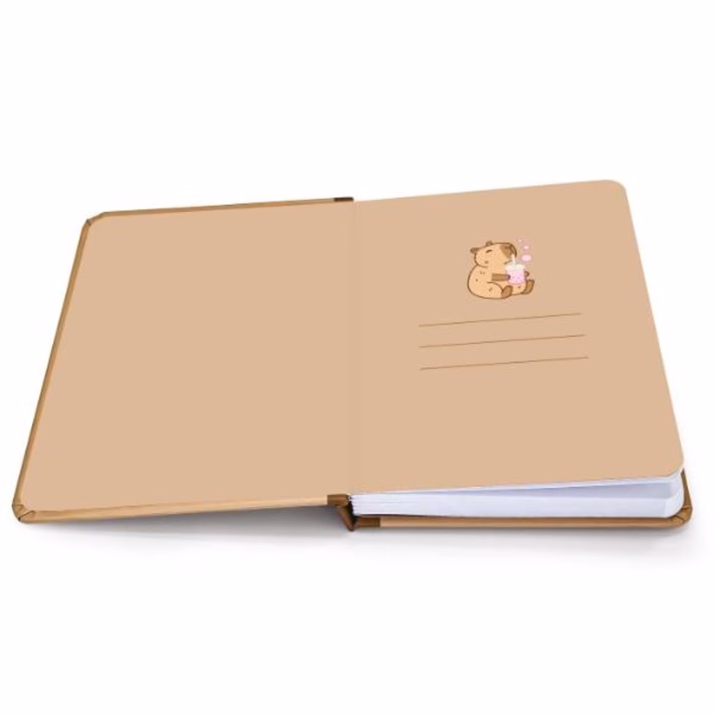 Notes A6 con 160 pagine e chiusura con elastico in 3 soggetti assortiti della linea Capibara, ideale per appunti scolastici, lavorativi o creativi.