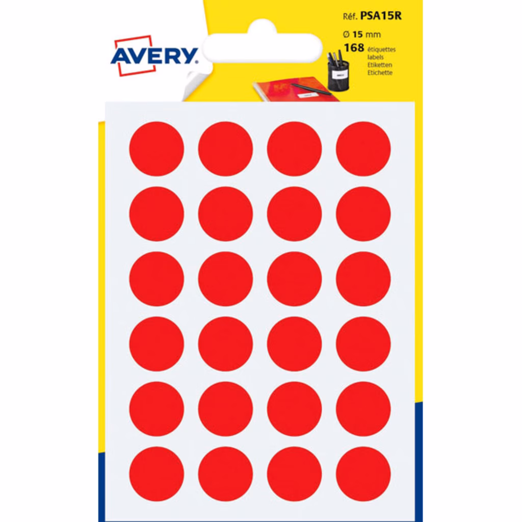 Etichette ad.rotonde in carta colorata rossa, scrivibili a mano, Ø 15 mm, 24 etich.per foglio, 7 ff