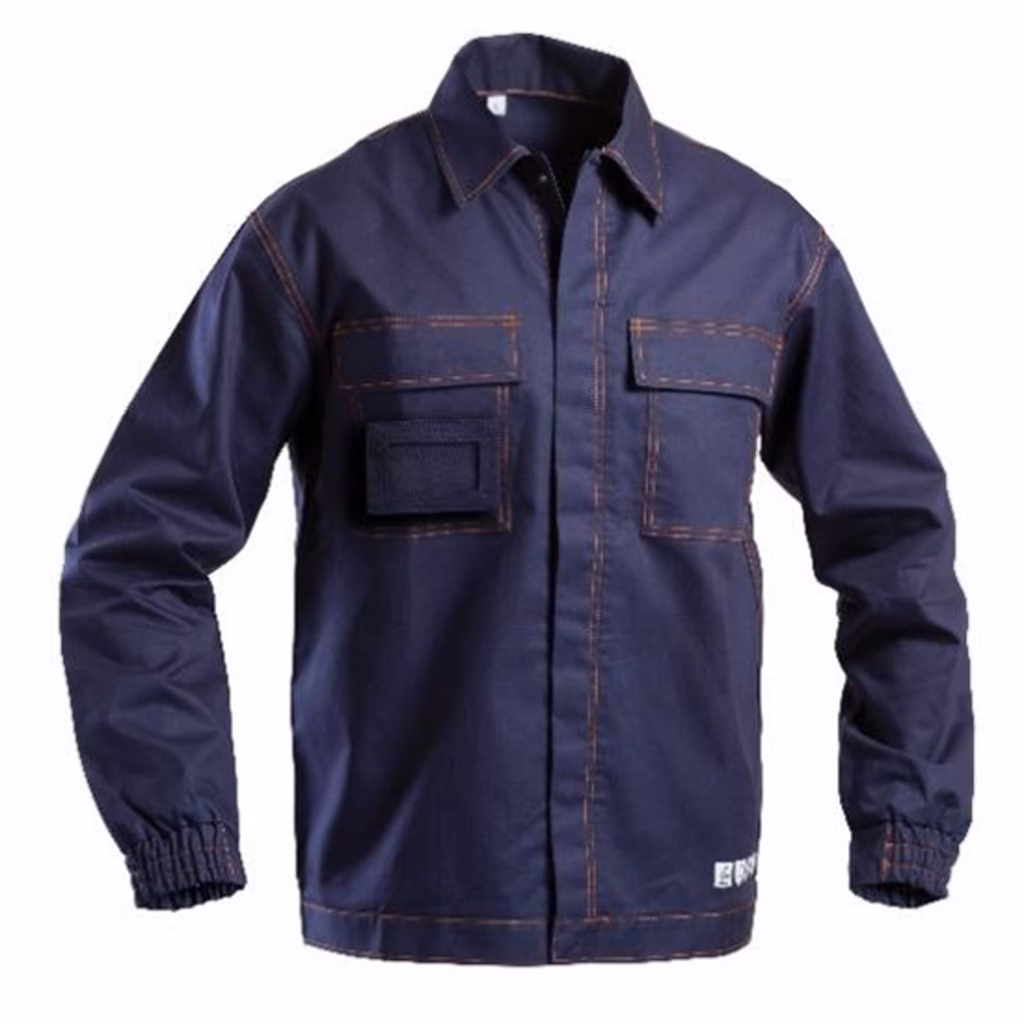 Collo a camicia - Chiusura anteriore con bottoni automatici coperti - Elastico ai polsi - Due tasche al petto chiuse con pattine e velcro - Portabadge - Rinforzo sulle spalle - Doppie cuciture sui punti di maggior sforzo - IMPIEGO: adatto per tecniche di saldatura - protegge da calore convettivo, radiante e contatto - dissipa le cariche elettrostatiche accumulate - offre resistenza a prodotti chimici non pericolosi - resistente all'effetto termico dell'arco elettrico
