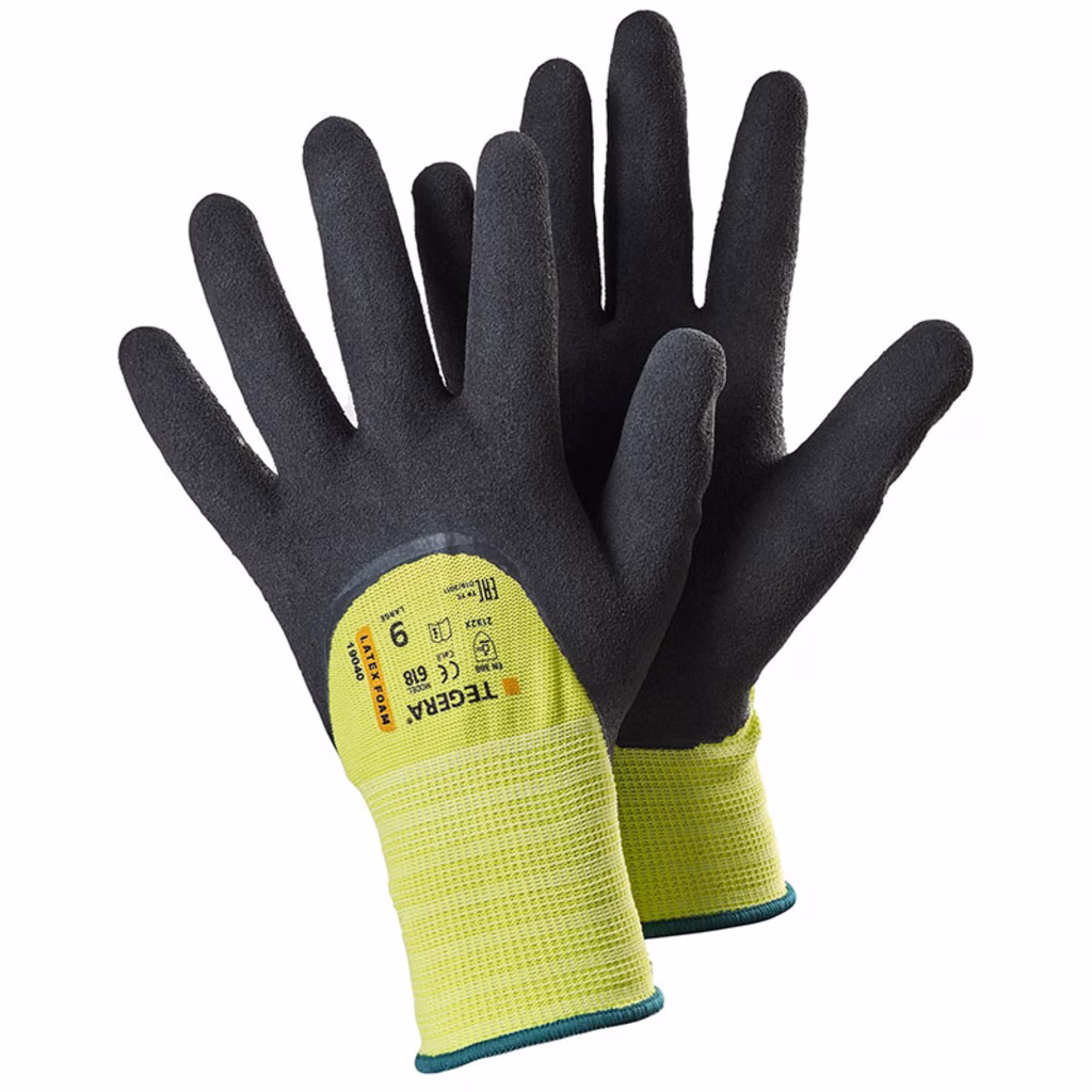 TEGERA® 618, Guanto sintetico, latex foam, rivestimento a 3/4, poliestere, grip tipo foam, Cat. II, colore ad alta visibilità, idrorepellente, per lavori di tipo generico