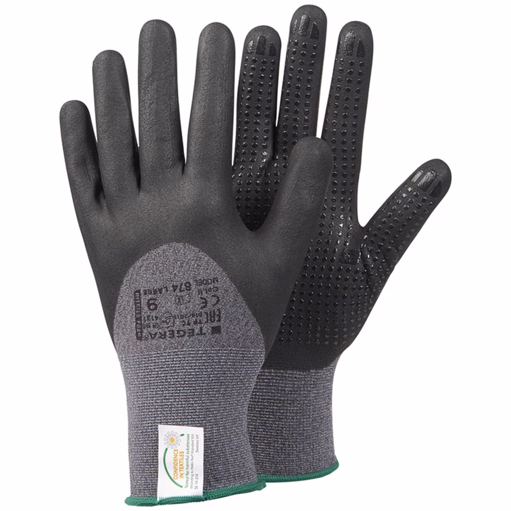TEGERA® 874, Guanto sintetico, foam di nitrile, rivestimento a 3/4, Lycra®, nylon, 15 aghi, grip tipo foam, Cat. II, palmo resistente agli oli e ai grassi, per lavori di precisione
