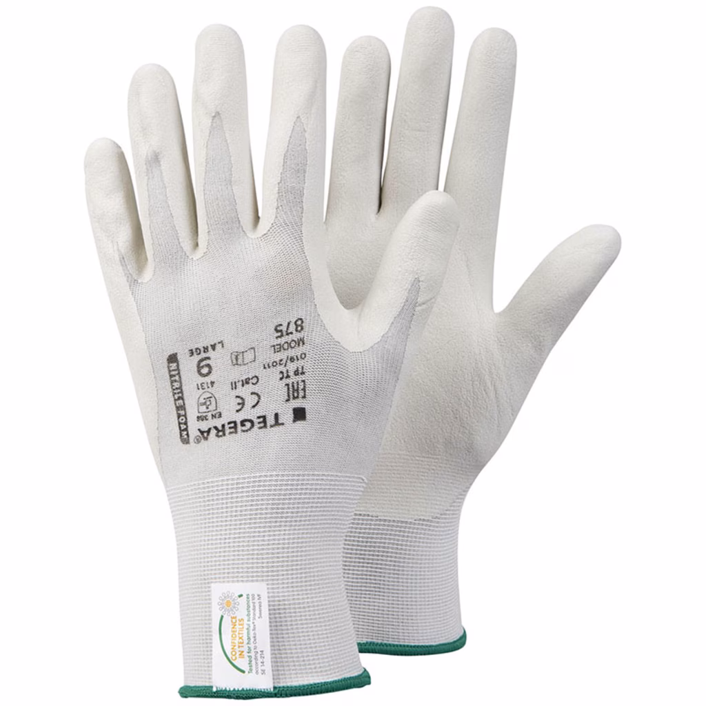 TEGERA® 875, Guanto sintetico, foam di nitrile, rivestito fino al palmo, Lycra®, nylon, 15 aghi, grip tipo foam, Cat. II, palmo idrorepellente e oleorepellente, per lavori di precisione