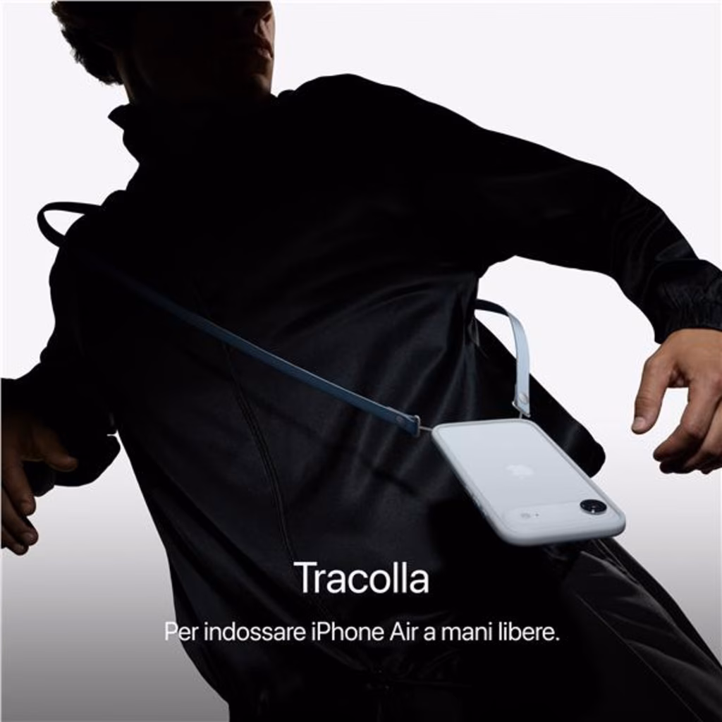 Il nuovo iPhone Air ha un design così sottile e leggero che è quasi difficile da credere. È spesso appena 5,6 mm e pesa solo 165 grammi, eppure ha un ampio, spettacolare display da 6,5" e tutta la potenza del chip A19 Pro. È liPhone più sottile di sempre: non ti resta che provarlo. Un sistema versatile per selfie fantastici, splendidi ritratti e foto di paesaggi spettacolari. E puoi anche fare video di livello professionale. iPhone Air è progettato per darti prestazioni incredibili nel design più sottile di sempre. Apple Intelligence e tante altre funzioni avanzate, come Ripulisci nellapp Foto, vanno come il vento e anche i giochi dalla grafica più complessa hanno una marcia in più. Tutto questo grazie alla potenza dei chip Apple di ultima generazione e allefficienza di A19 Pro.