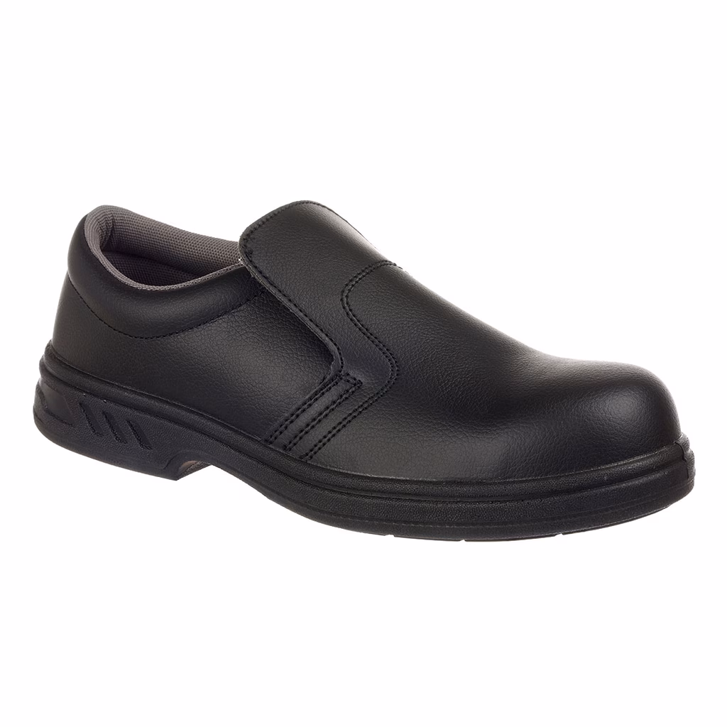Eccellente scarpa senza lacci - ideale per le industrie mediche e alimentari. Tomaia in microfibra facile da pulire - è pratica - sicura e resistente. Puntale in acciaio e ottima resistenza allo scivolamento. - Suola auto pulente per prevenire le contaminazioni - Colletto imbottito per un maggior comfort - Tomaia dal design lineare - Sagoma slip-on - Disponibile in taglie unisex - Lavabile in lavatrice a 30 °C - Adatto ai vegani - Disegnate per le stanze asettiche - mediche e alimentari - Certificato CE - Marcato UKCA - Puntale in acciaio protettivo