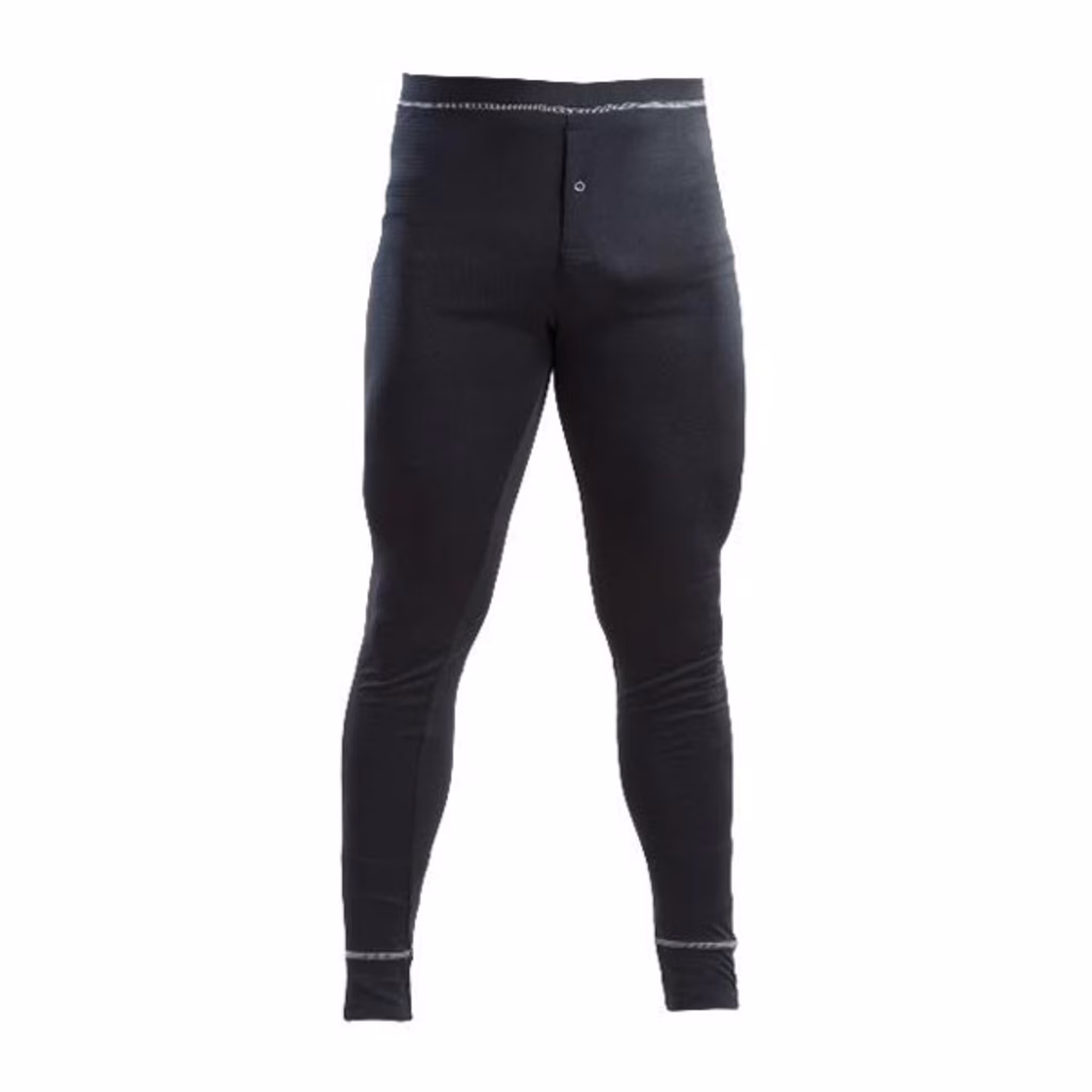 Pantalone termico colore nero elastico in vita apertura frontale con bottone cuciture a contrasto grigie - Tessuto: 100% poliestere cooldry traspirante