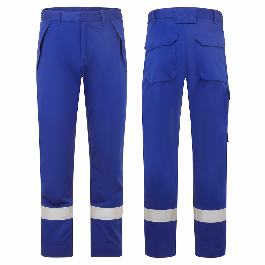 Pantaloni FR resistenti alle sostanze chimiche PORTWEST FR417 colore blu royal taglia 56