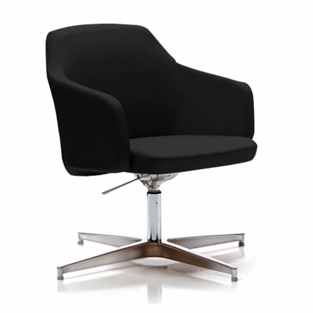 Edgar attesa con schienale basso ideale anche per sale riunioni. Imbottiture in poliuretano stampato a freddo autoestinguente. Braccioli integrati allo schienale. Struttura interna del sedile in legno certificato Fsc. versione fissa con base in alluminio piramidale a 4 razze su piedini. RIVESTIMENTI Proposta in tinta unita con vera pelle e tramite supplemento nella versione bicolor.