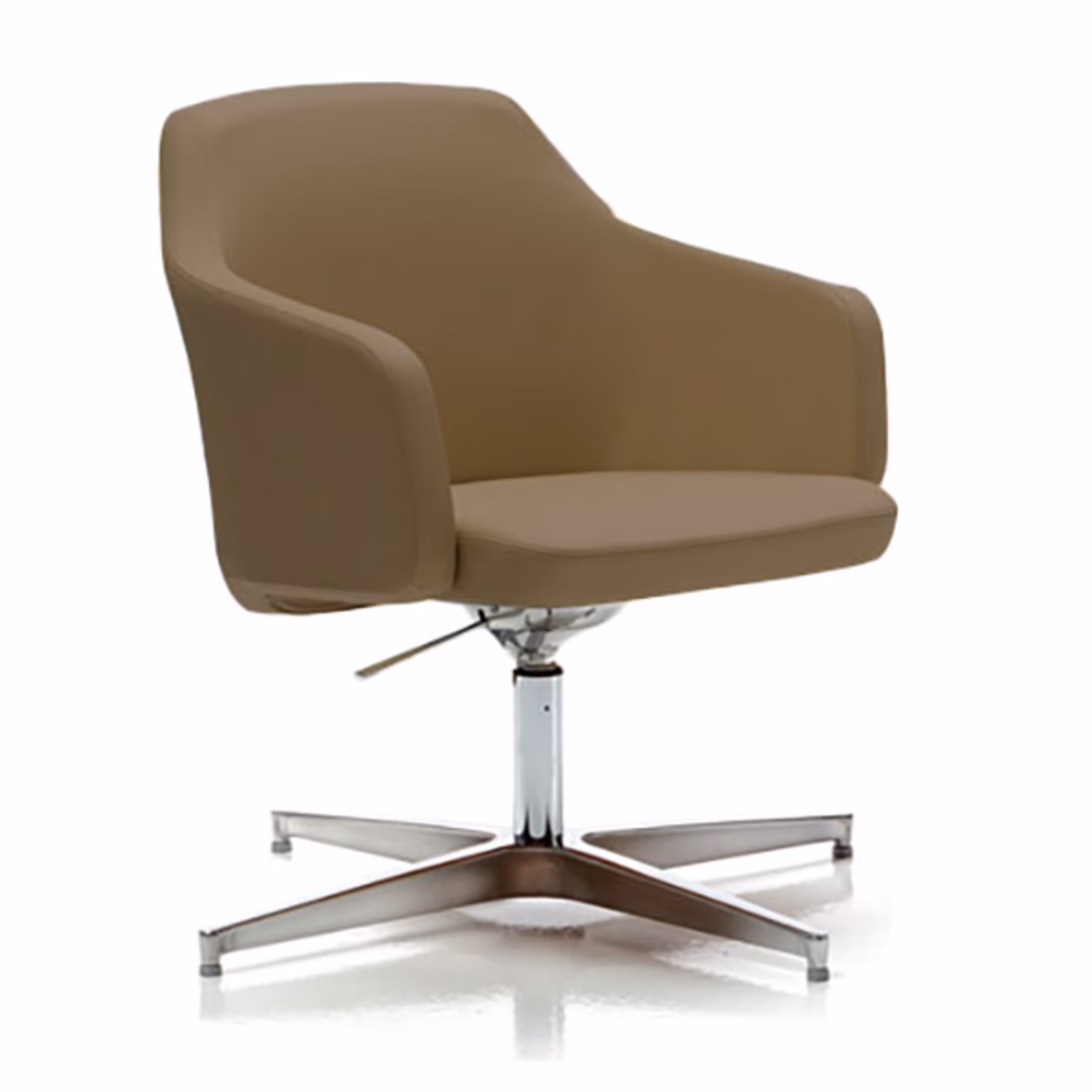 Edgar attesa con schienale basso ideale anche per sale riunioni. Imbottiture in poliuretano stampato a freddo autoestinguente. Braccioli integrati allo schienale. Struttura interna del sedile in legno certificato Fsc. versione fissa con base in alluminio piramidale a 4 razze su piedini. RIVESTIMENTI Proposta in tinta unita con vera pelle e tramite supplemento nella versione bicolor.