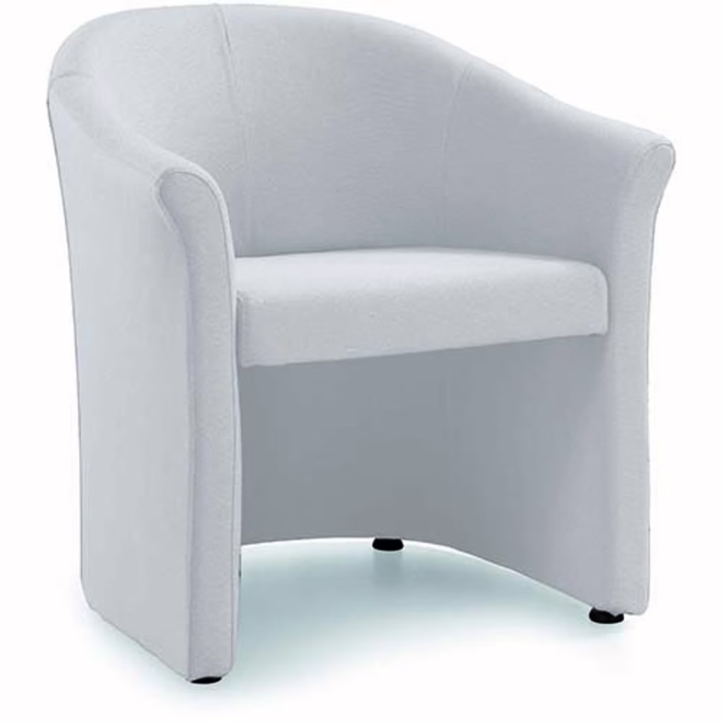Poltrona con imbottitura in schiumato a freddo densità 75 kg/mc. Dimensioni LxpxH cm 66x60x75. Rivestimento in ecopelle colore bianco