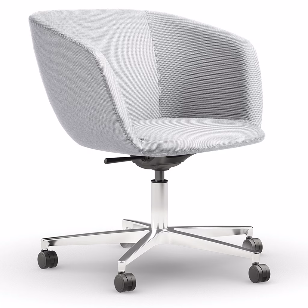 Elegante, snella e morbida, Soul svela tutta loriginalità del suo carattere con i rivestimenti in tessuto, ecopelle e pelle. È realizzata nelle versioni con schienale basso e alto. Poltrona monoscocca con struttura interna portante in tubolare di acciaio a sezione mista. Imbottitura in poliuretano espanso schiumato. Piastra fissa girevole completa di sistema di regolazione in altezza sedile tramite alzata a gas. Base 5 razze in alluminio. Ruote piroettanti a doppio battistrada. Richiedibile tramite supplemento con base a 4 razze in aòlluminio su piedini. RIVESTIMENTI: Proposta in tre rivestimenti e diversi colori: Vera pelle, tessuto ignifugo Ultra (test usura 50.000 cicli Martindale) oppure ecopelle Happy (test usura 50.000 cicli Martindale).