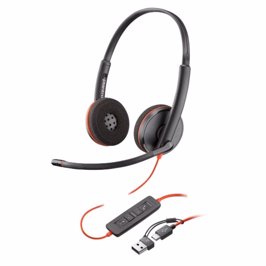 Poly Blackwire 3220 USB-C con adattatore USB-C/USB-ALe cuffie Poly Blackwire 3220 sono una soluzione cablata affidabile e versatile, pensata per professionisti che lavorano tra ufficio, smart working e postazioni condivise. Offrono la qualità audio Poly ottimizzata per le comunicazioni aziendali, con un design leggero ma robusto, ideale per un utilizzo prolungato durante l intera giornata lavorativa.Il microfono con cancellazione del rumore e l equalizzatore dinamico regolano automaticamente le impostazioni audio, garantendo chiamate chiare e naturali e un ottima resa anche per l ascolto di contenuti multimediali. La doppia connettività USB-C con adattatore USB-A incluso assicura la massima compatibilità con PC moderni e legacy, senza necessità di configurazioni o driver.Il comfort è garantito dall archetto in metallo leggero e dai cuscinetti auricolari in similpelle, pieghevoli e facili da trasportare, rendendo la Blackwire 3220 adatta anche a chi si sposta frequentemente. Caratteristiche principali: Cuffia stereo cablata on-ear per uso professionale Microfono con cancellazione del rumore per chiamate chiare Equalizzatore dinamico ottimizzato per voce e musica Connessione USB-C con adattatore USB-C/USB-A incluso Controlli in linea per risposta/fine chiamata, volume e mute Design leggero e resistente con archetto in metallo Compatibile con Windows e macOS Ottimizzata e certificata per le principali piattaforme UC  Una soluzione semplice, solida e immediata per chi cerca affidabilità, qualità audio e comfort nella comunicazione quotidiana.