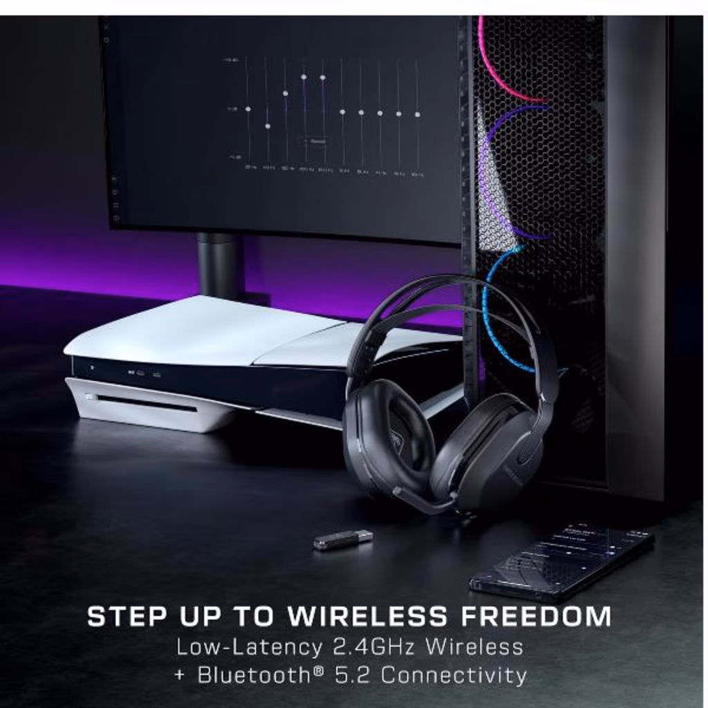 Liberati dalle connessioni cablate - Gioca ai tuoi titoli preferiti su PS5, PS4, PC e dispositivi mobili con un sistema wireless a bassa latenza da 2,4 GHz e di una connessione Bluetooth 5.2.Tecnologia QuickSwitch - Passa facilmente tra la connessione wireless da 2,4 GHz a quella Bluetooth e viceversa premendo semplicemente il pulsante QuickSwitch integrato.Batteria migliore nella sua categoria - Con una durata della batteria che può arrivare a 40 ore e dotate di ricarica rapida, potrai goderti sessioni di gioco lunghe senza doverti preoccupare dell'alimentazione.Personalizzazione Anywhere Audio - Connettiti al software Swarm II per PC o alle applicazioni mobili per accedere all'equalizzatore a 10 bande, alle regolazioni microfono dell'equalizzatore e per ottenere il firmware più recente.Configurazioni audio facilmente accessibili - Migliora la tua esperienza di gioco premendo un pulsante, attivando i quattro preset di equalizzazione audio Turtle Beach: potenziamento dei bassi, suoni tipici e potenziamento vocale.  Visualizza altri dettagli prodotto
