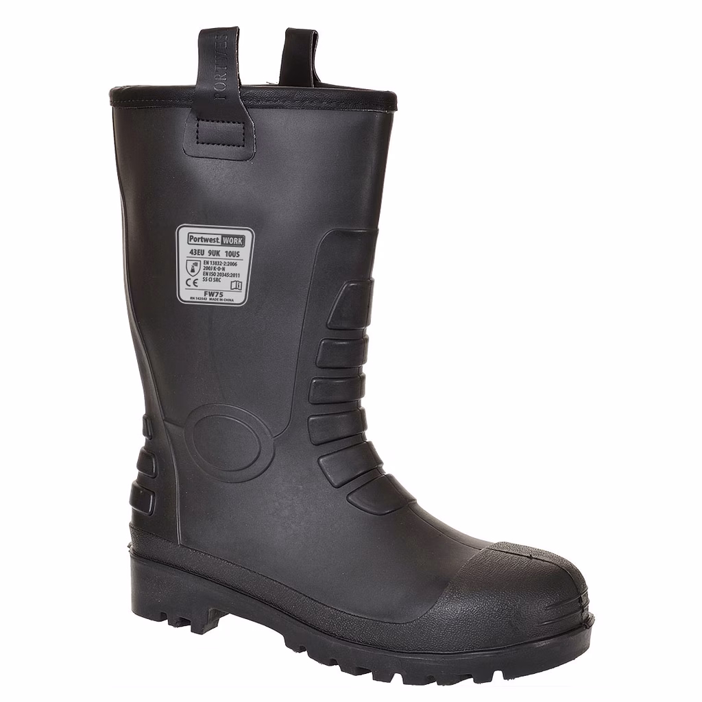 Un alternativa impermeabile al rigger in pelle. Completamente impermeabile e foderato di pelliccia con alette laterali per una maggiore facilitè  di calzata. - Foderato in pelliccia per aggiungere calore e comfort - Kick spur - Protezione della caviglia rinforzata - Protezione chimica - 100% Impermeabile per mantenere i piedi caldi e asciutti - Isolamento dal freddo - Certificato CE - Marcato UKCA - Puntale in acciaio protettivo - Lamina in acciaio resistente alla perforazione - Calzatura antistatica - Tallone con assorbimento energia - SRC - Suola antiscivolo per evitare scivolamenti e inciampi su superfici in ceramica e acciaio - Suola resistente ai carburanti e agli oli - Protezione chimica