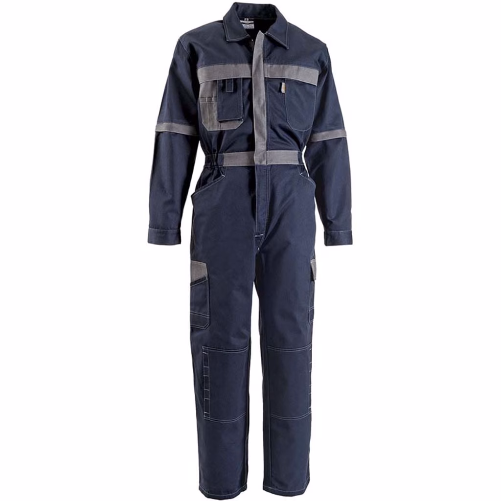 Tuta lavoro modello Globo con cerniera coperta - elastico in vita - velcro ai polsi - mezze maniche staccabili con cerniera - due tasche anteriori - due tasche posteriori con velcro - taschino con portapenne e portacellulare al petto - tascone con pattina su gamba sinistra- doppia tasca applicata su gamba destra - aperture per inserimento protezioni alle ginocchia