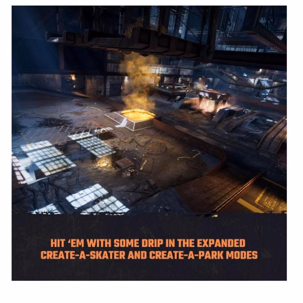 - Sbatti in faccia a tutti il tuo stile con le modalità espanse Crea uno skater e Crea un park, che per la prima volta permettono di creare obiettivi personalizzati da condividere con gli amici.